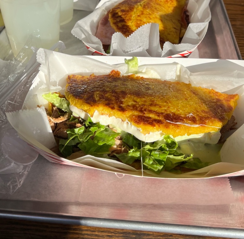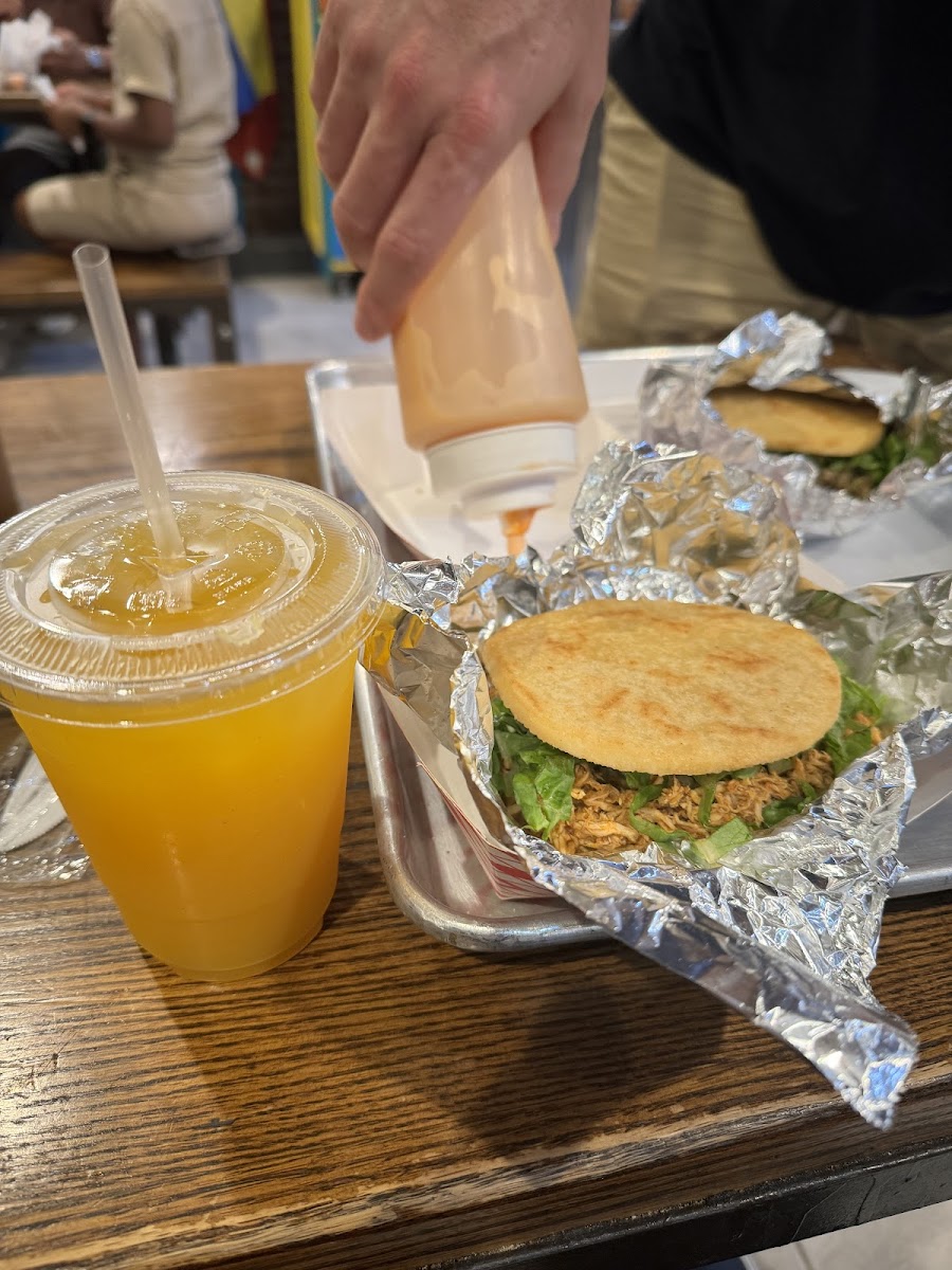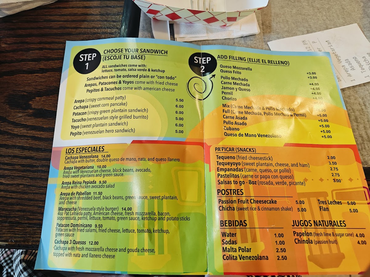 I ordered the Patacon with shredded chicken and a Papelon (lemonade with cane sugar). Good food and very friendly employees. The ambience was nice, a lot of seating to eat inside and a small patio area to eat outside. Pretty affordable price. Does accept card and cash. ---- Ordené el Patacón con pollo mechado y un Papelón (limonada con azúcar de caña). Buena comida y empleados muy amables. El ambiente era bonito, muchos asientos para comer adentro. Precio bastante asequible. Aceptan tarjeta y efectivo.